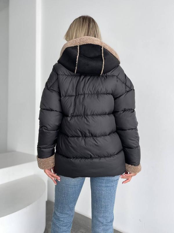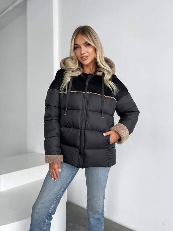 Модель уникального кроя, имеет невероятно стильное сочетание матовой водоотталкивающей плащевки и дубленки 🥰