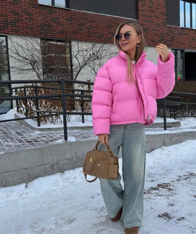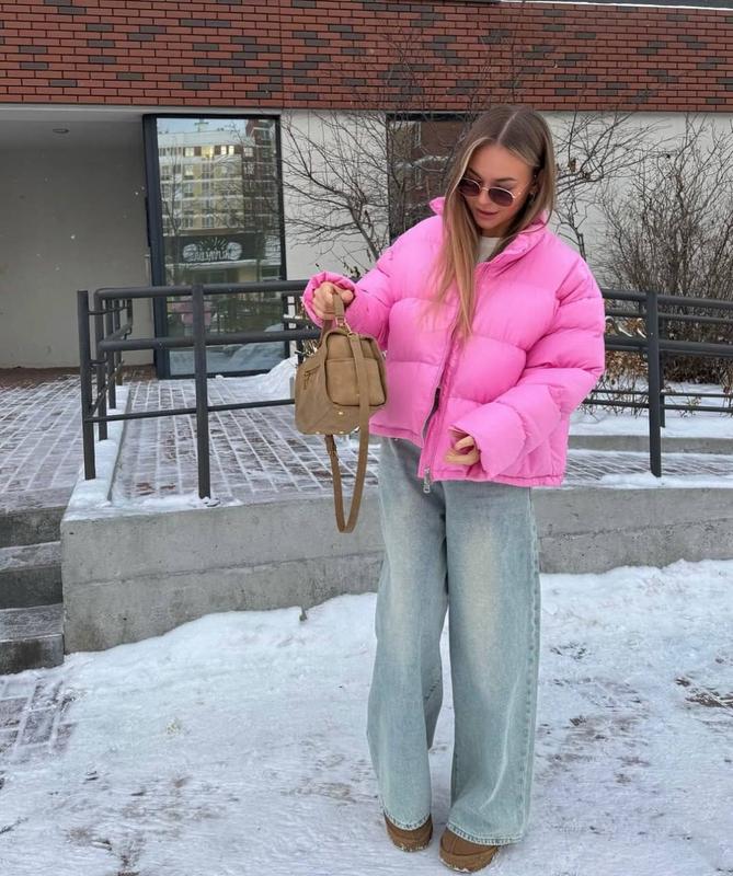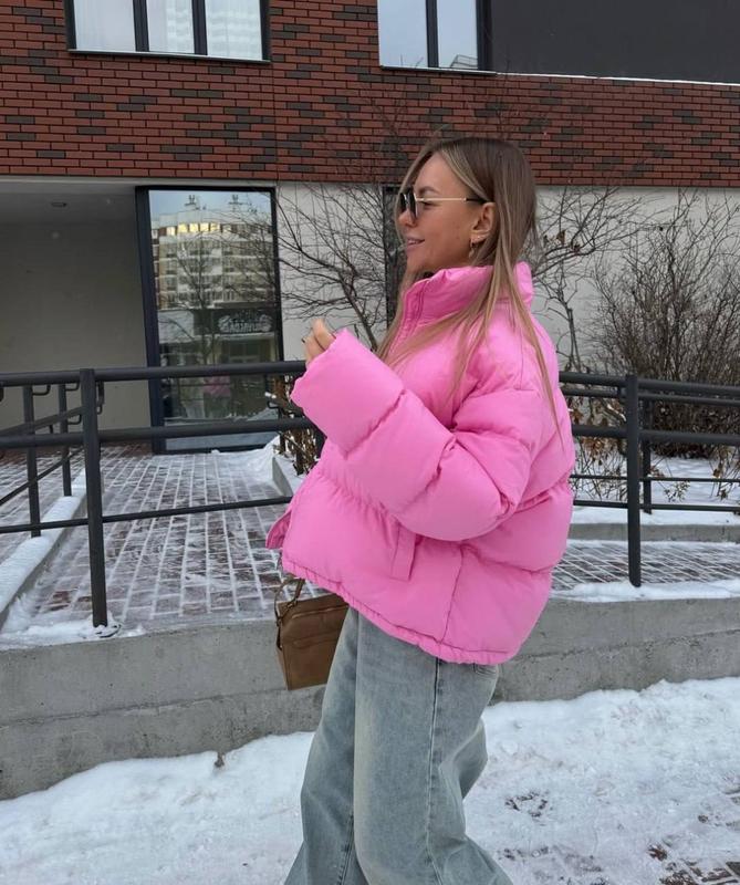 Яркая oversize куртка насыщенного розового и черного цвета. Модель с объемными рукавами, высоким воротником и удобной молнией. Идеальный выбор для стильных образов!