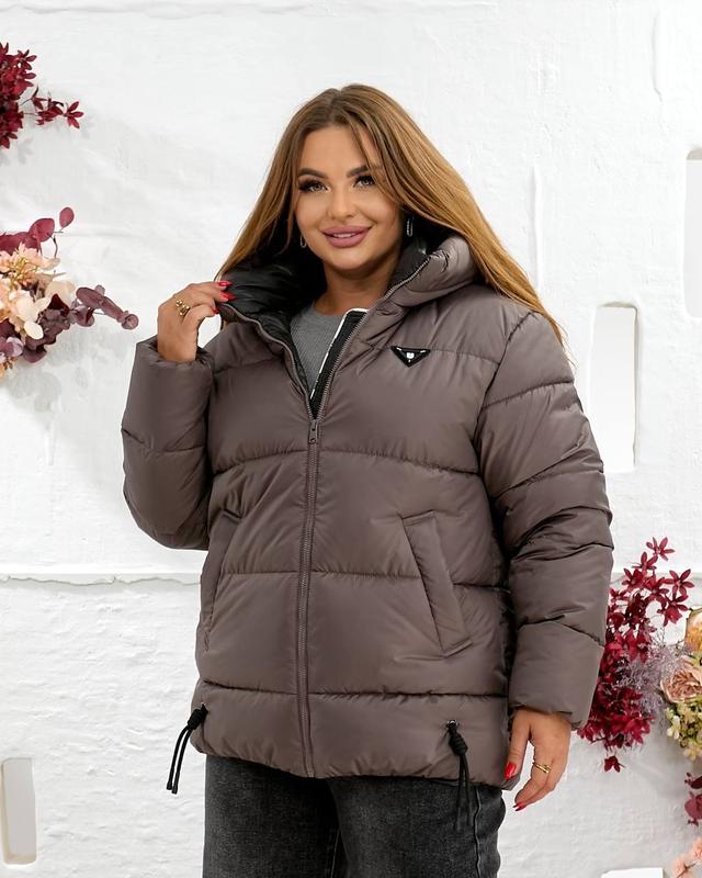 Коричнева тепла куртка ♥️ вкорочений пуховик ☺️ жіночий пуховик на змійці ♥️