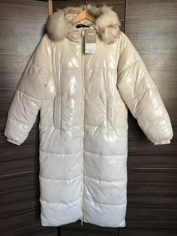 Довжина 114. ПОГ 55. Плечева 40. Длина рукава 63 .ПІТ 56. ПОБ 60. Виготовлено з еко матеріалу , тепло гарно зберігає, можна протирати владними серветками. Колір молочний, хутро знімається, сучасне модне пальто, новеньке.