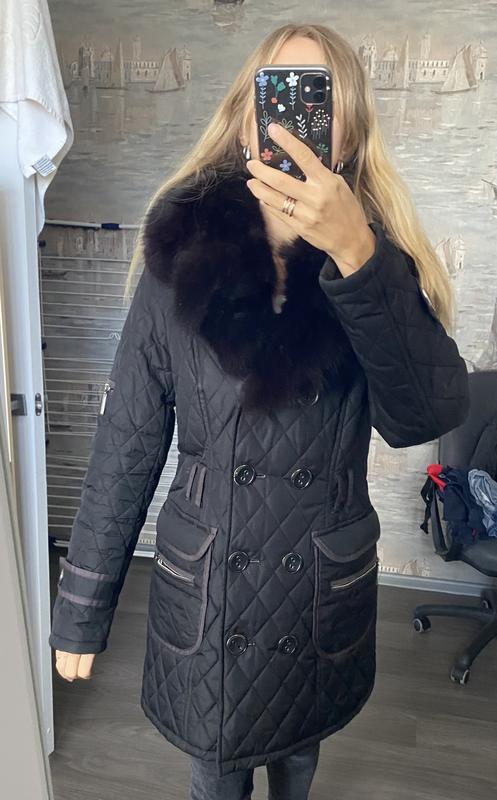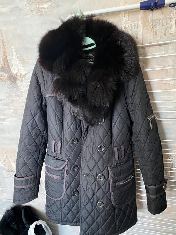 Зимове пальто з натуральним коміром (песець). Ремінь був втрачений. Вказаний розмір - 42
