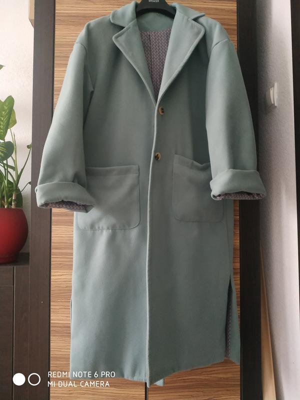 Дуже гарний колір,кашемір,атласна підкладка,накладні кармашки довжина -116 рукав-78 ог-114 об-116 оверсайз