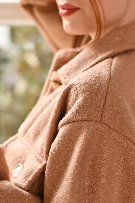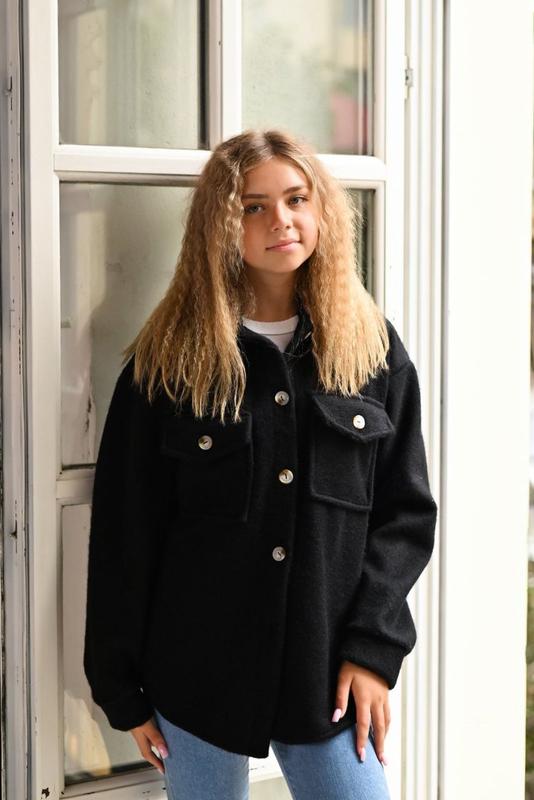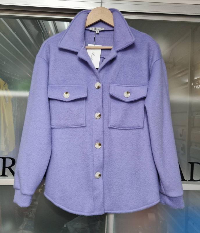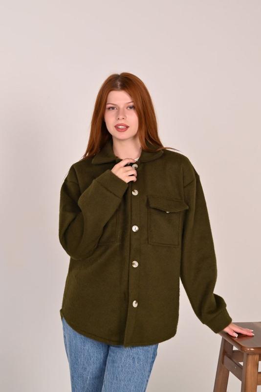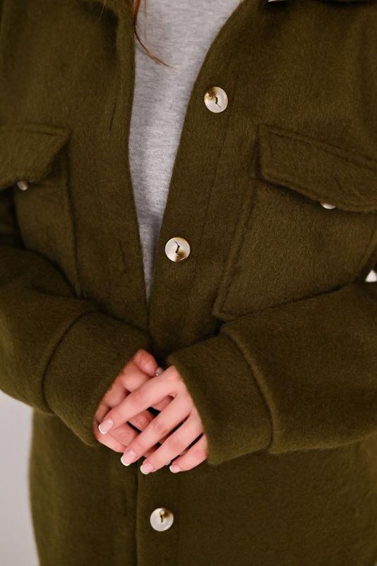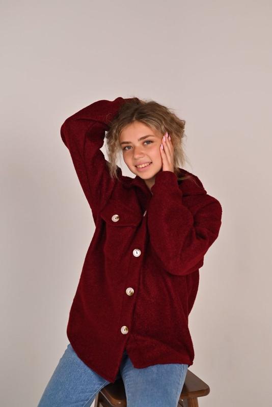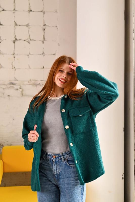 Теплая рубашка с накладными карманами на груди из высококачественной ткани букле