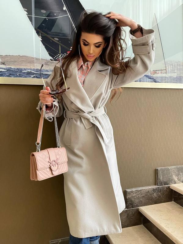 Стильное светло-серое пальто женское весенне-осеннее, деми,осень-весна, кашемир, женственная одежда на осень ПАВ