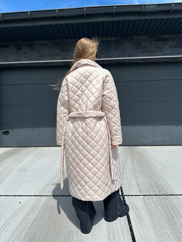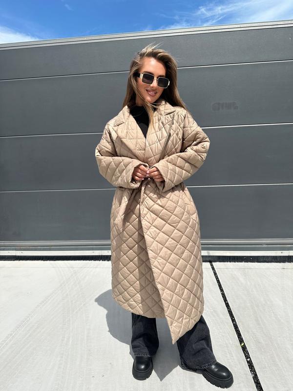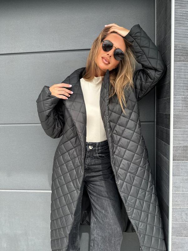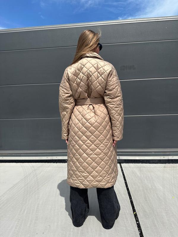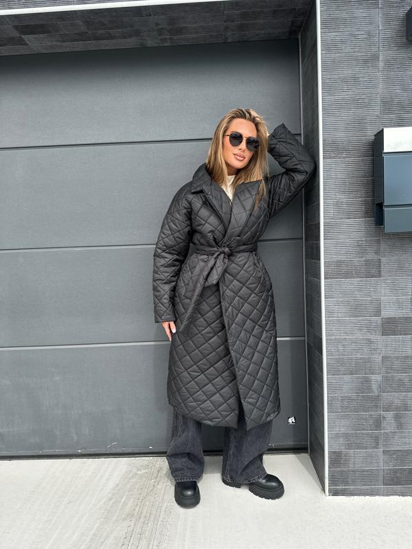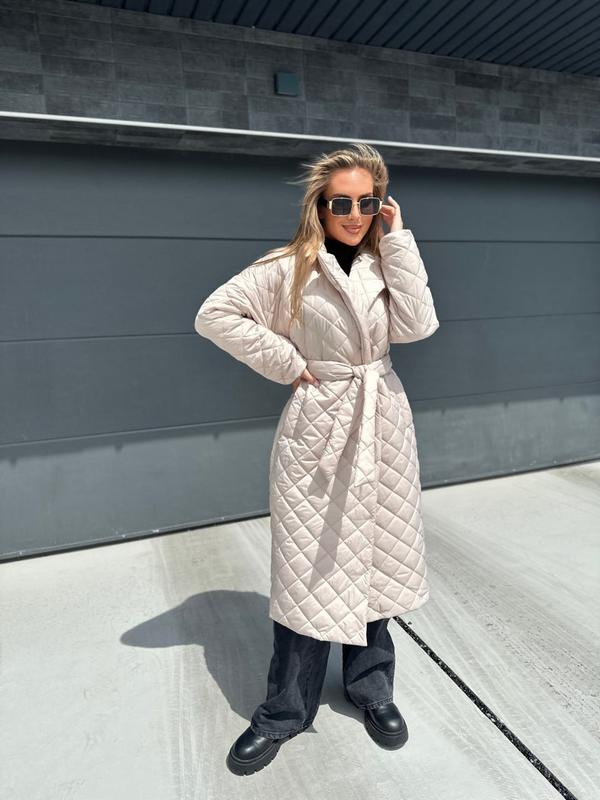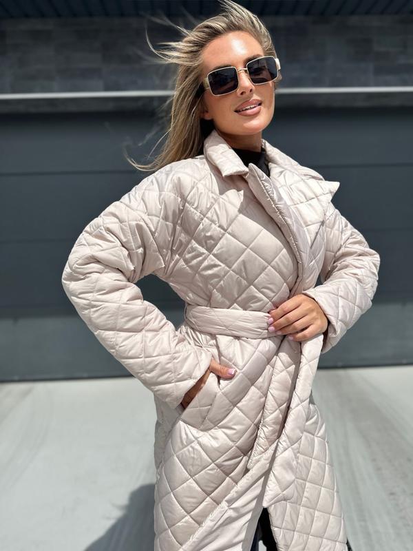 Арт. 5-309Размер: 1 (42-46), 2 (48-52)Длинное пальто из плащевой ткани стеганой на силиконе 150. Пояс из основы в комплекте. Модель без застежек, спереди карманы. Подкладка из основы.