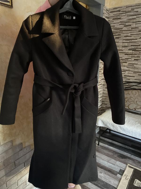 Распродажа стильное кашемировое черное деми пальто, силуэтное пальто хс