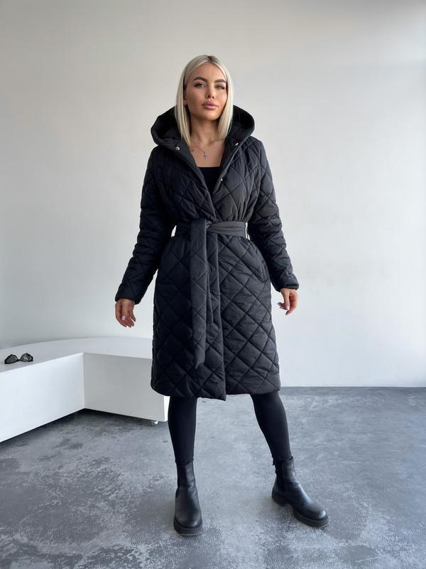 ‼️‼️ ОТРИМАЛЫ ЗИМУ на Силиконе 200!!️‼️Пальто Мод. 987Тканина: Плащівка матова. Наполнитель силикон 200Отличное качество!Размеры: 42-44, 46-48, 50-52КОЛЬОРА: Черный, БежКурточка на заклепках+пояс. С капюшоном и карманами. Цена: 1500 грн