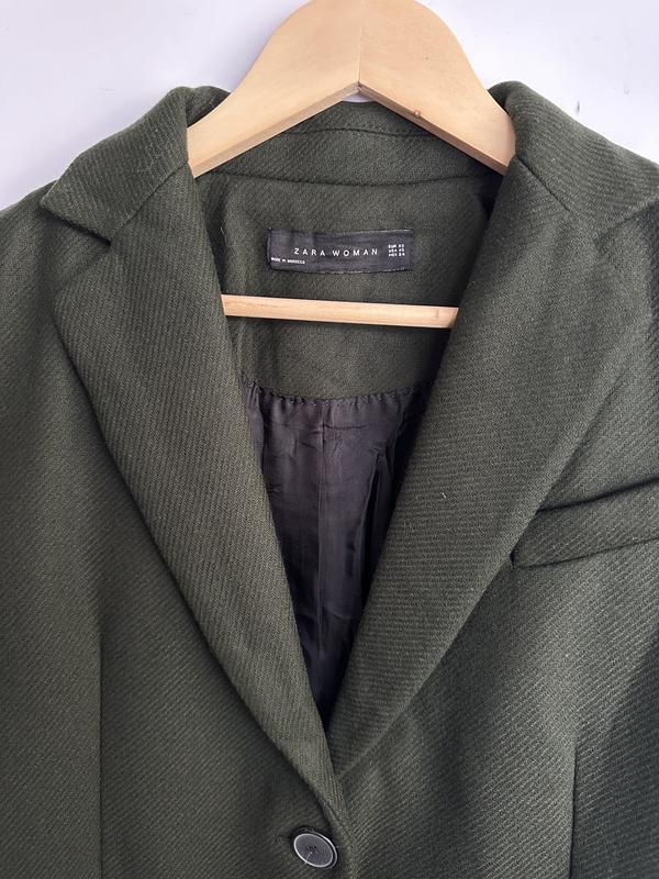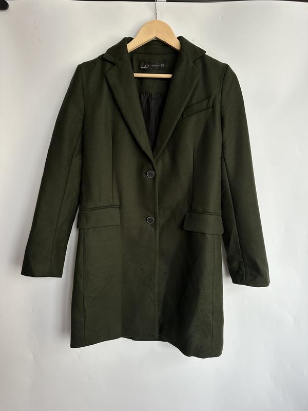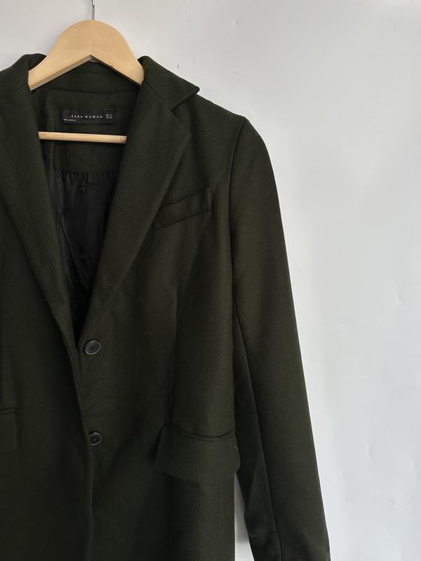 Очень красивое пальто из шерсти от бренда Zara. Классический крой. Темно - зеленый цвет. Стан - идеальный. Размер XS-S.