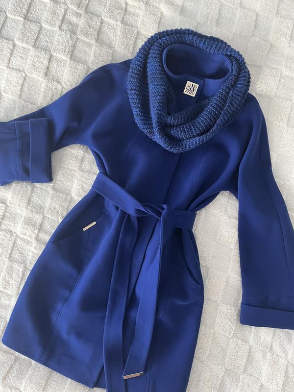Пальто с поясом женское ручная работа, темно синий цвет, размер м, тонкая подкладка