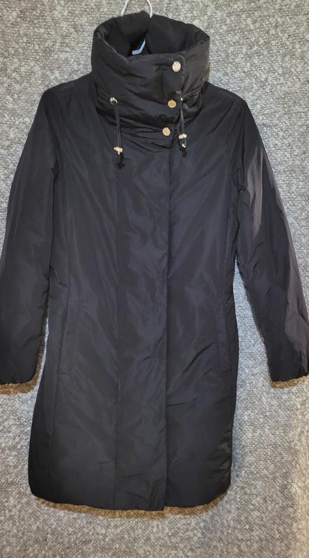 Шикарної якості оригінальне пальто куртка. Назва говорить сама за себе! Легеньке . Брендована фурнітура! Колір насичений чорний. Модний високий комір. Кишеня на кнопці. Рукав зсередини на резинці. Є внутрішній карман. Плечі 40 Рукав 62 Під грудьми 51 По бедрах 57 Довжина 92