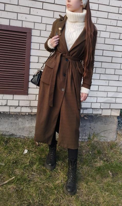 Длинное пальто с поясом, в идеальном состоянии, без следов ношения (надевала пару раз), есть подкладка, без утепления, цвет хаки(на фото совершенно не передаётся оттенок, более похожий цвет на последнем фото), подойдёт на размер XS-S-М.