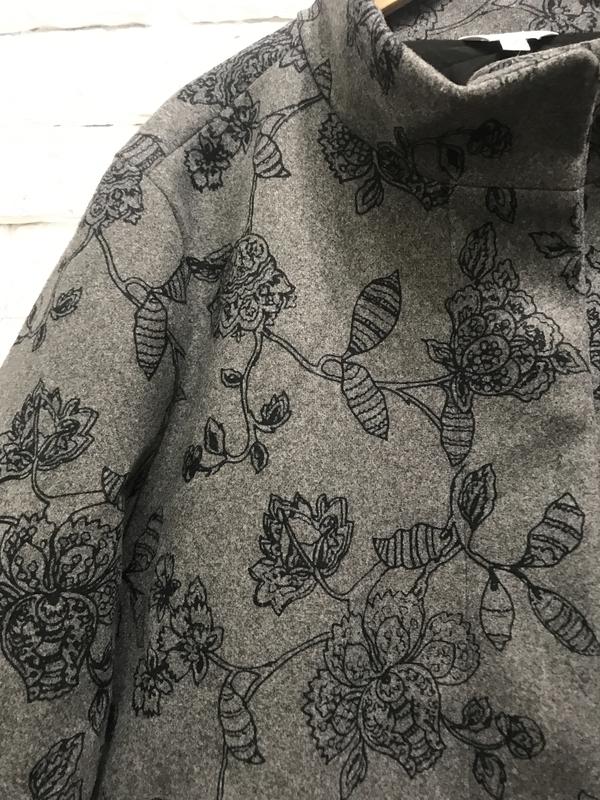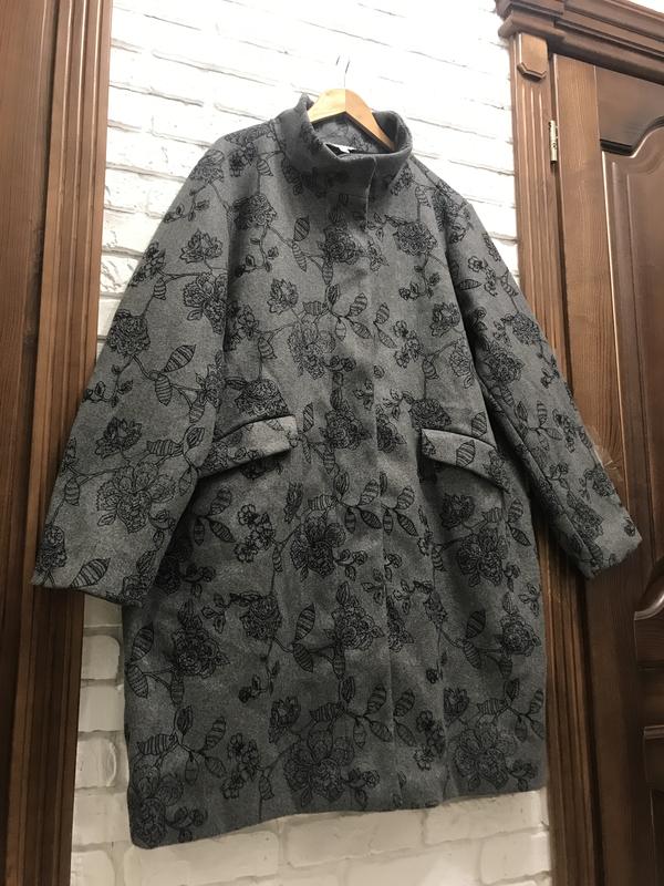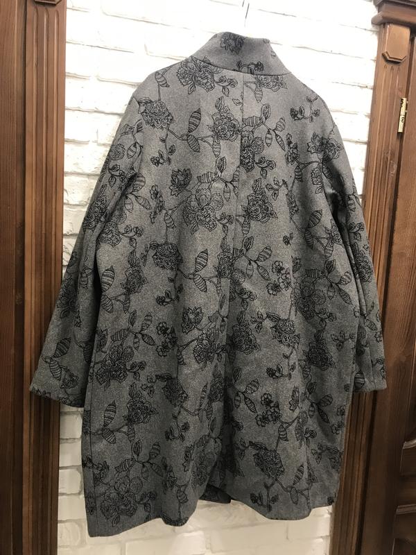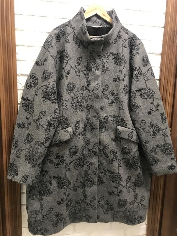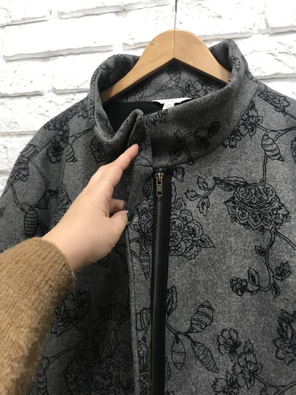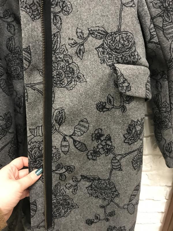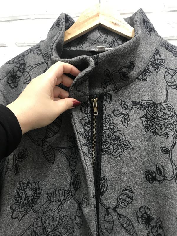 Стильное пальто в цветочный принт застегивается на молнию, имеет два кармашка