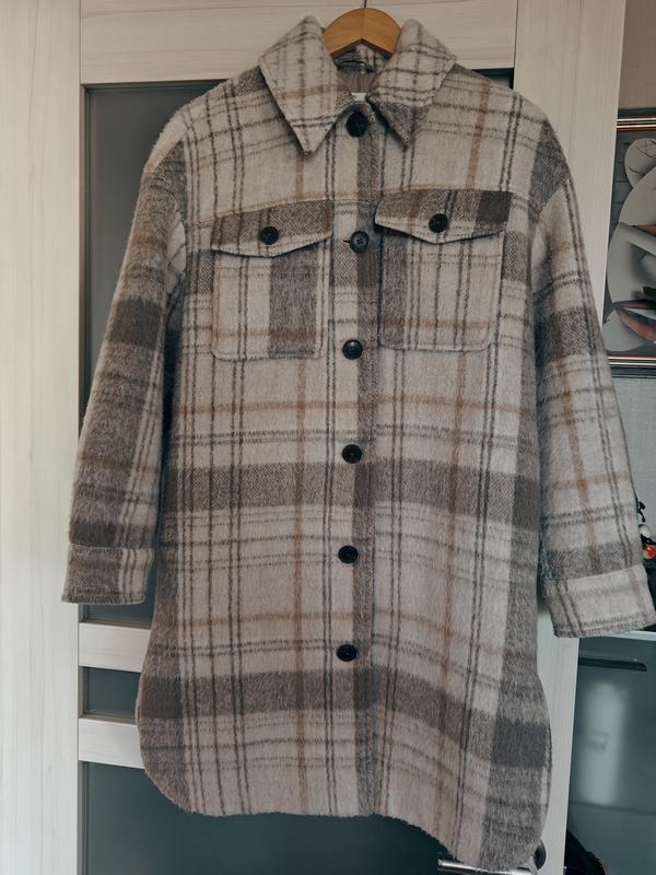 на подкладке пальто известного бренда на весну осень, в составе есть шерсть, прямого кроя, по бокам разрезы, спущенный рукав, накладные карманы на груди, р. S, возможно на М. Длина по спинке 93 см, ПОГ 54 см