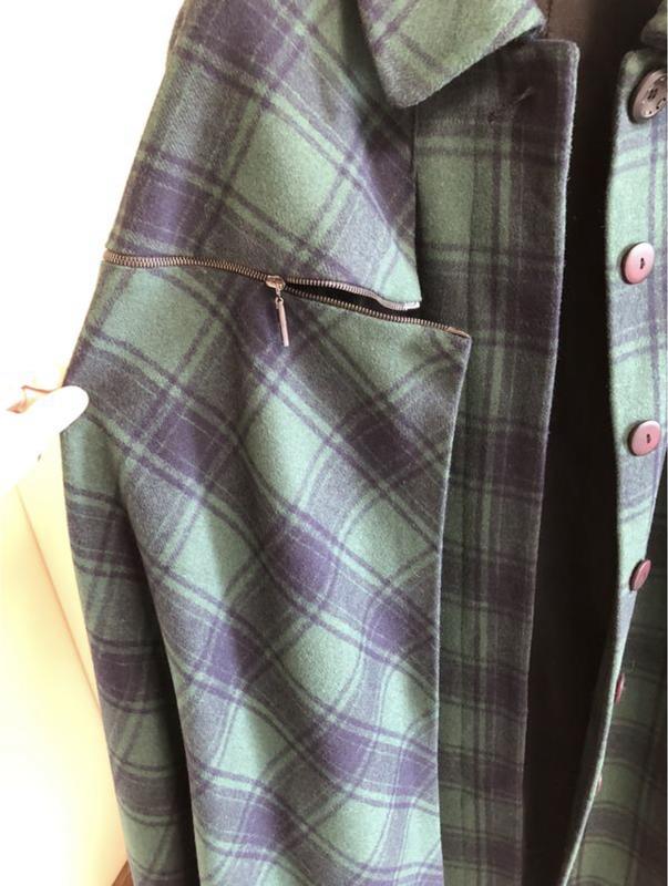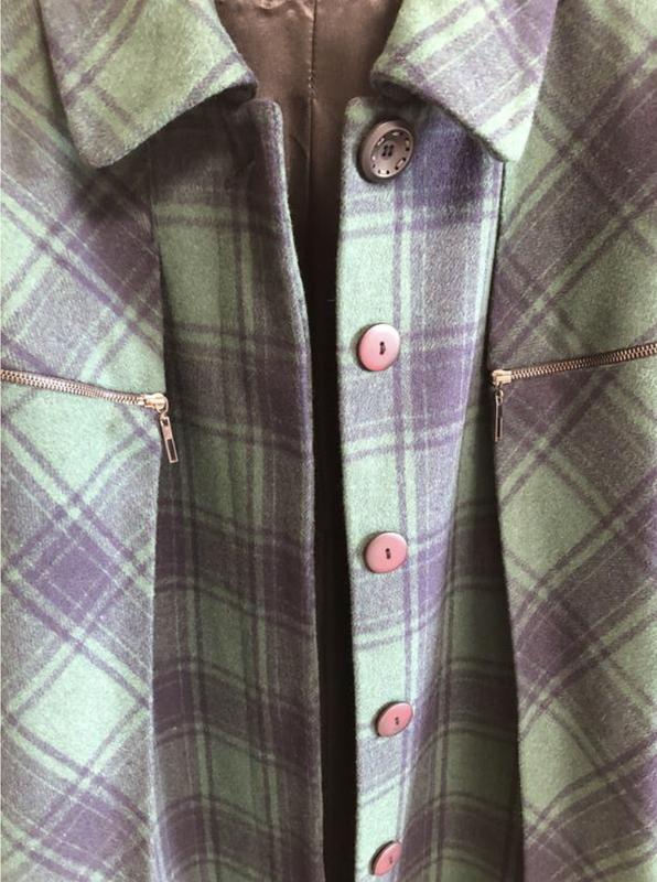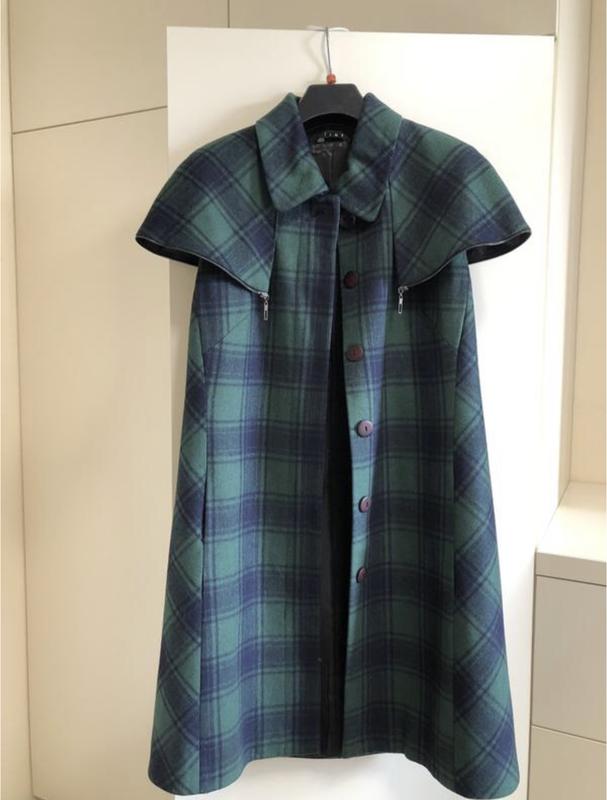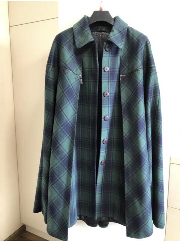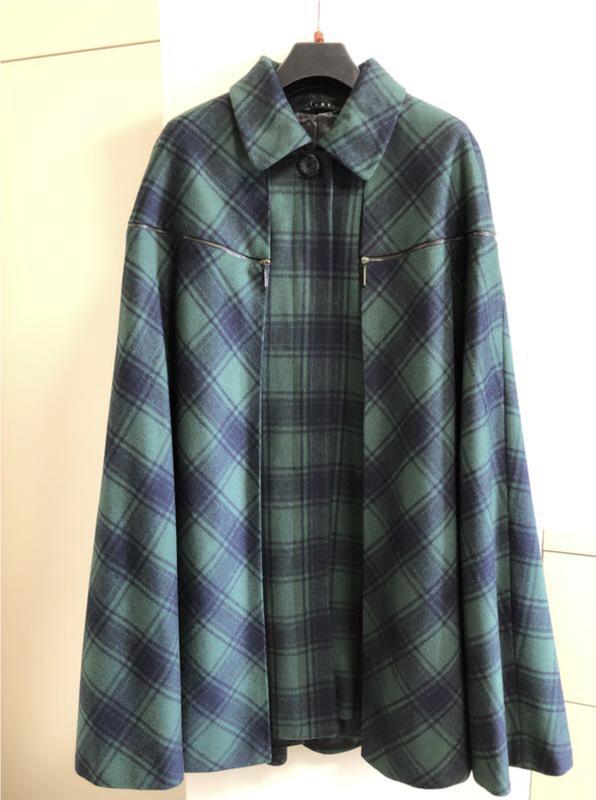 Пальто - кейп в очень красивую зелено- синюю клетку, из тонкой шерсти. Новое. Накидка отстегивается и получается очень стильное пальто - жилет со спущенными плечами. Дорогой качественный Украинский бренд FRIZMAN..