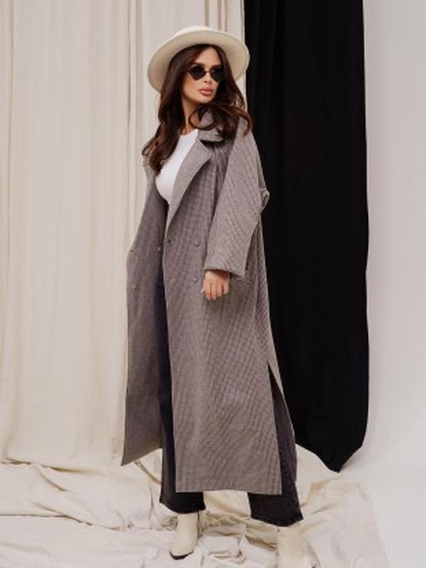 Состав: 80%, шерсть, 20%, полиэстерСерое длинное пальто свободного прямого кроя, выполненное из клетчатого кашемира. Пальто оснащено карманами и боковыми разрезами. Модель на пуговицах с воротником и длинными рукавами реглан. Пальто без подкладки.Измерение изделия
