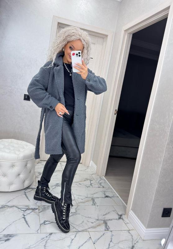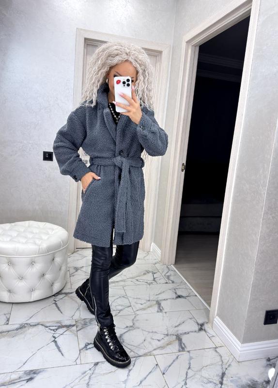 Осеннее пальто из меха Тедди.размер 42,44,46,48 С поясом