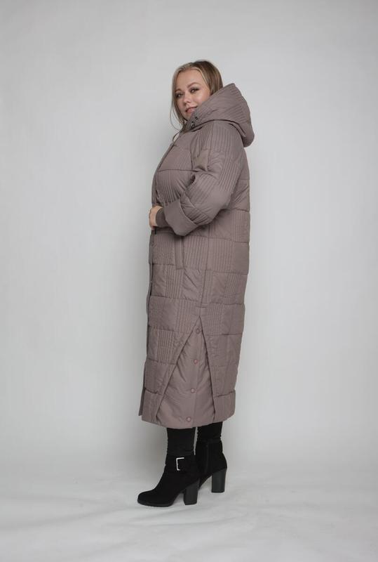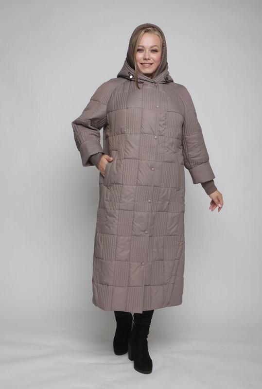 Оригінальне подовжене демісезонне пальто з наскрізь простьобаної плащової