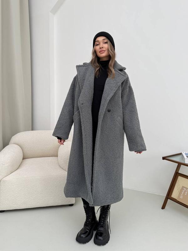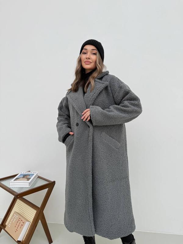 ПальтоЦена: 1750Материал: теплый эко мех Тедди + подкладкаРазмеры: 42-46, 48-52Цвета: молочный, черный, бежевый, графит, мокко* пояс у комплектіБут