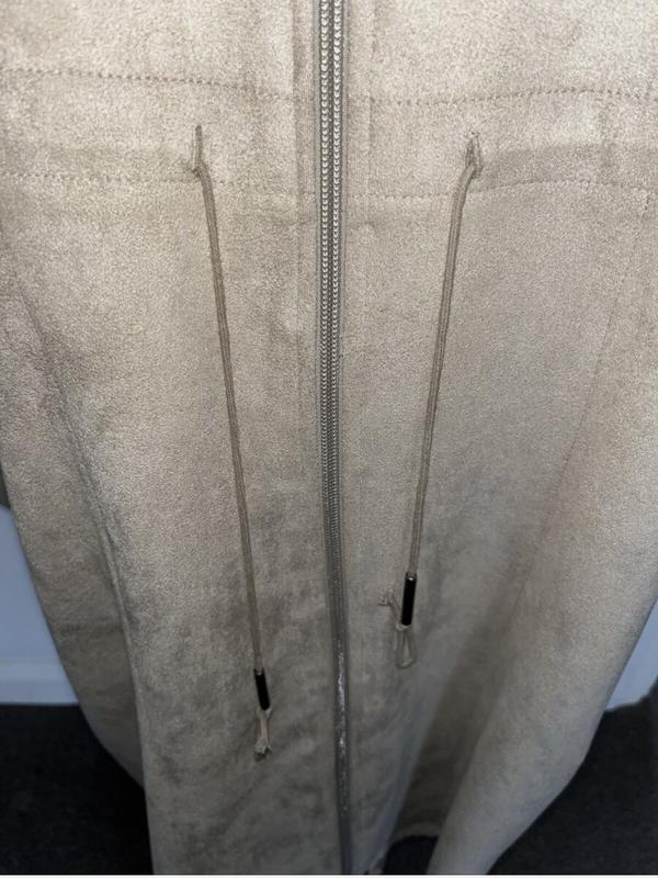 Мягкий бежевый внешний материал идеально подходит для любого сезона, независимо от того, надеваете ли вы многослойную одежду зимой или наслаждаетесь солнечным днем весной. Акценты с кисточками и застежка-молния добавляют нотку богемного стиля этой классической базовой куртке.