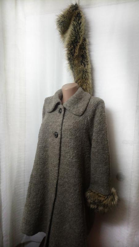 65%-lane wool 👍 Отличное Качество 🌹 Шелковисто Мягкий приятный трикотаж На шёлковой подкладке Фасон трапеция +реглан Комфортный свободный фасон 👍 2-кармана 🍬 Съёмный меховой воротник Дл.из - 85(перед)71-по бокам Низ идёт полукругом Рукав от горловины - 63,5 Реглан - 28 Пог - 55, к низу трапеция Цвет интересней чем на фото Светло коричневый Кофе с молоком M/L