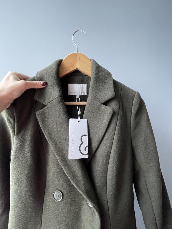 Стильне вовняне пальто, італійського виробника Mint and Berry, нове, з біркою, розмір S {36EU}. На підкладці, з двома кишенями, комплектується поясом. Застібка на ґудзики, двобортне. Класичний крій. Демісезон.