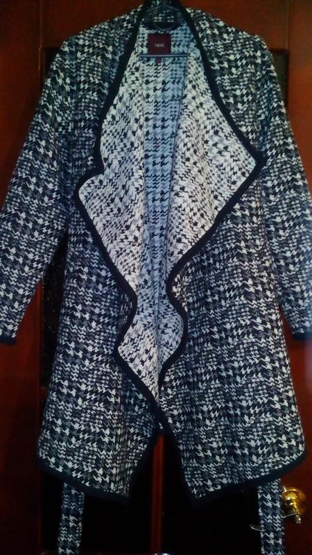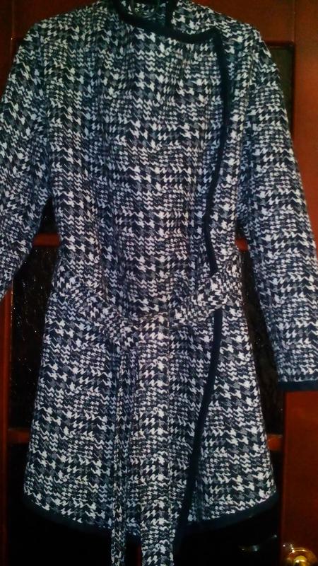 Модный ,тёплый кардиган. В составе 15%шерсти. Стоит размер М,идёт на 10-12. Есть карманы, застёгивается, пояс. Длина Рукава 58см, длина пальто 86см, ПОГ 52см.