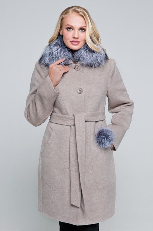 Зимнее пальто – теплая вещь, не придающая объем фигуре даже на больших размерах. Модель, застегивающаяся пуговицами, изготовлена из шерстяной ткани, утепленной Slimtex. Утеплитель с микропористой структурой стал залогом того, что в данном наряде комфортно на улице при отрицательных значениях температуры. При этом пальто не ощущается на теле тяжелым, как шубы, в нем двигаться легко и приятно. Пальто с прорезными карманами декорирует строчка имиритирующая ручной стежок. Есть пояс, который добавляет модели интересный вид. Изделие застегивается пуговицами. Съемный мех чернобурки на отложном воротнике придает лоск модели. Милый бубон из натурального меха, пристегивающийся металлическим карабином к верхней части кармана создает игривое настроение.