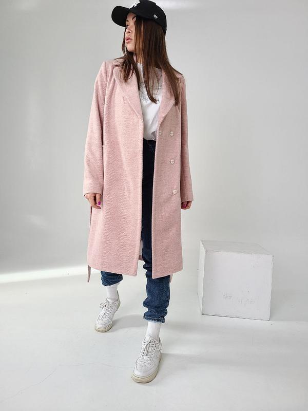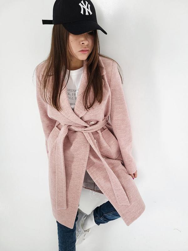 Новинка🔥класичне пальто в ніжному пудровому кольорі 😍 (ще є в клітинку,сіре,бєж)