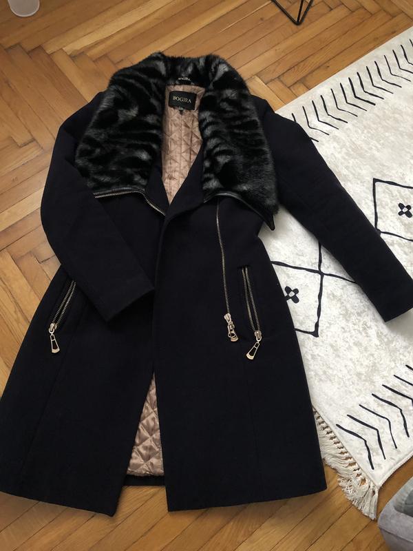 Пальто зимове/ темно синього кольору / комір з натурального хутра