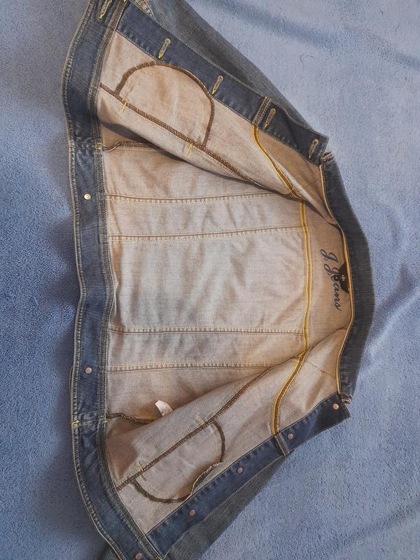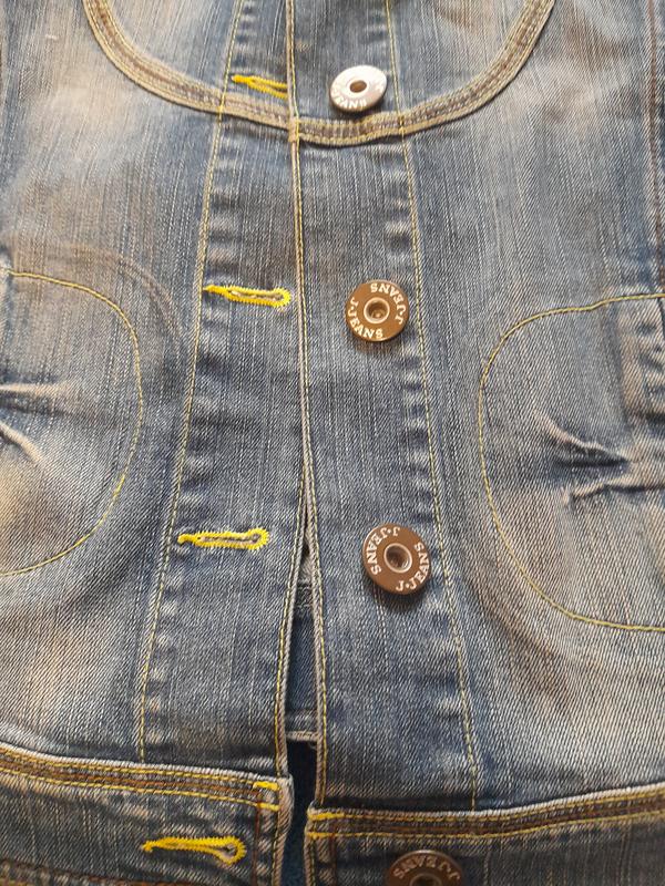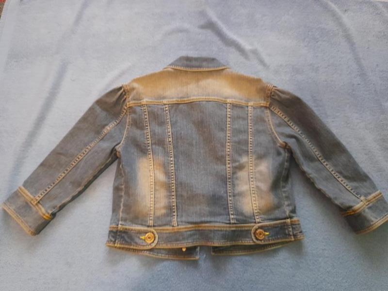 Котоновый джинсовый пиджак куртка р 12 замеры плечи 42 под мышками 50 длина по спинке 54 длина рукава 3/4 44