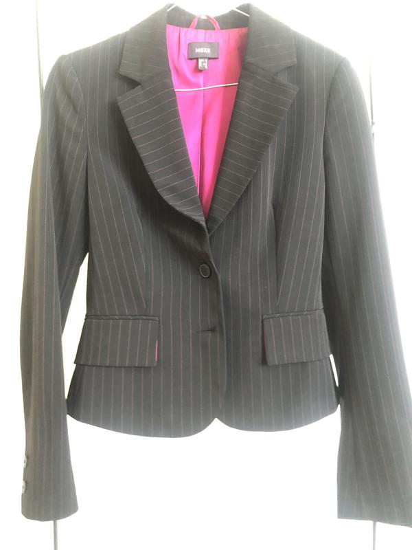 36-38 Цвет черный в тонкую малиновую полоску. Состав: полиэстер - 91%, эластан - 8%, вискоза - 1%. Подкладка (цвет благородный малиновый): ацетат - 100% ШП - 38 см ПОГ - 40 см ПОТ - 36 см ДИ - 59 см ДР (внешняя) - 61 см ДР (внутренняя) - 42 см Товар обмену и возврату не подлежит