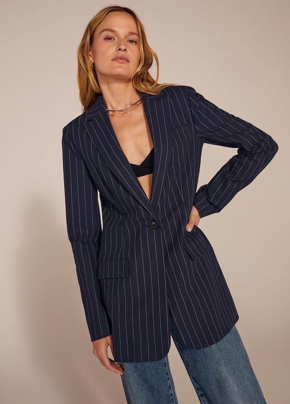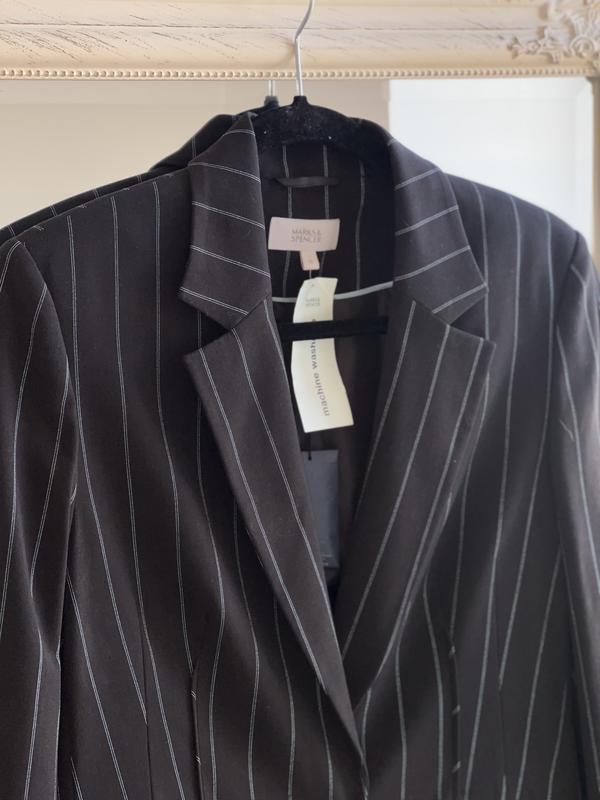 удлиненный блейзер в полоску Mark & Spenser
