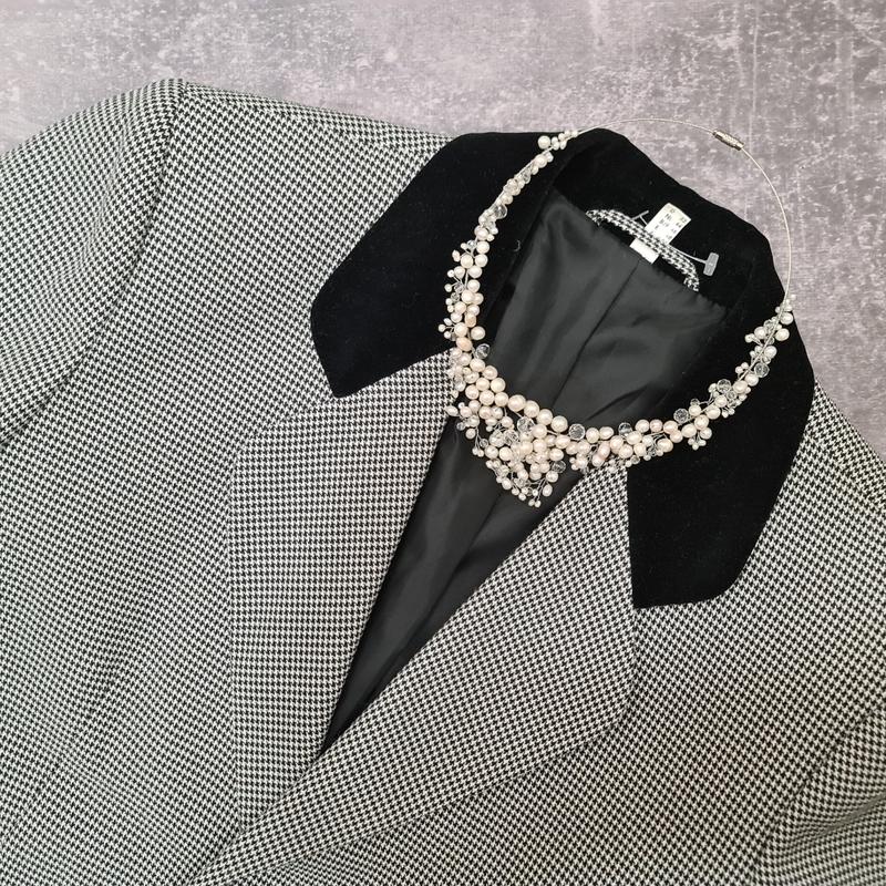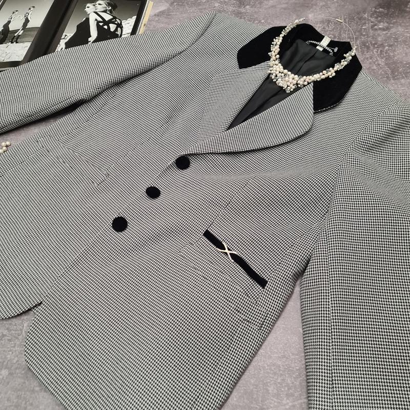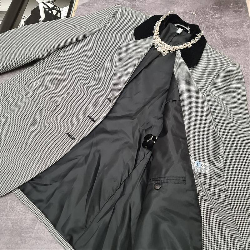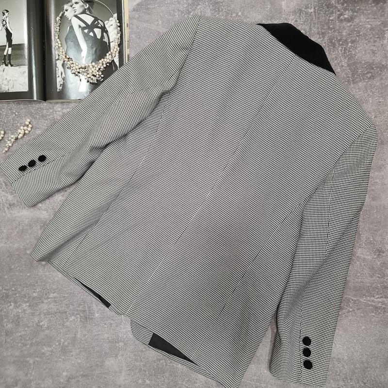 Шикарный винтажный жакет. Бархатные пуговицы и воротничок, классическая черно-белая клетка. Крой оверсайз, не приталенный. Есть подплечники и подкладка. Размер подойдет на полномерную М сядет легким оверсайзом, на L-XL. Все замеры по запросу.Стан идеален, без нюансов.