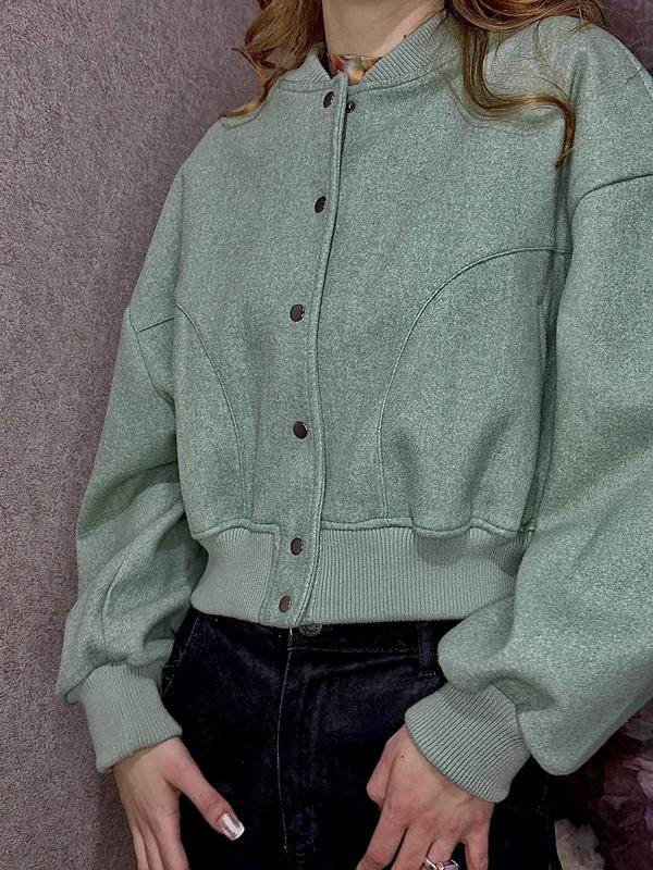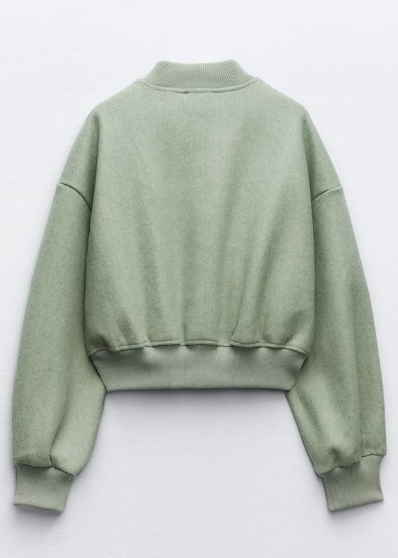 Бомбер з м'якої тканини з круглим вирізом та довгими рукавами. Передні прорізні кишені, еластичні кромки у рубчик. Застібається на кнопки.СВІТЛО-ЗЕЛЕНИЙ Розмір МНовий з біркою