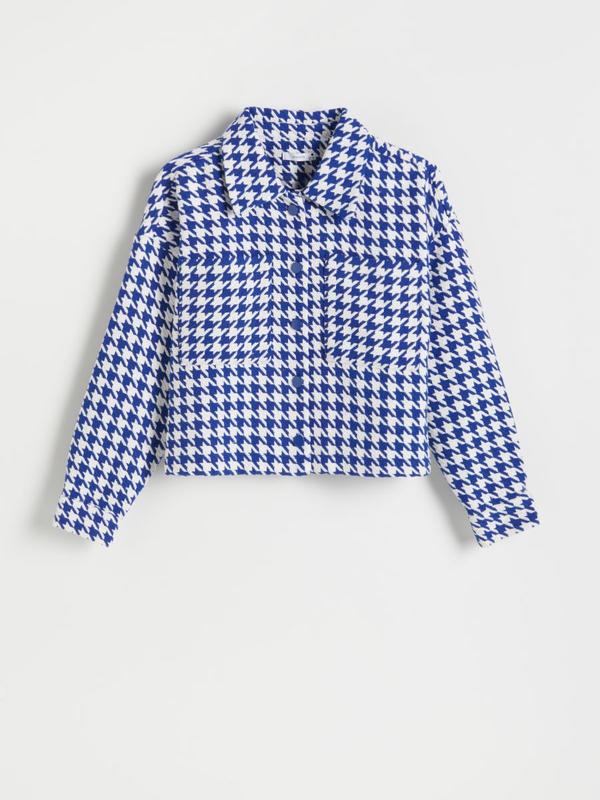 Новая с наборкой рубашка - пиджак ReservedРазмер 42 ( S-M ). Свободного кроя. Укорочена. Длина от плеча - 45 смДлина рукава - 51 см ( рукав спущен) Полуобхват груди - 60 см