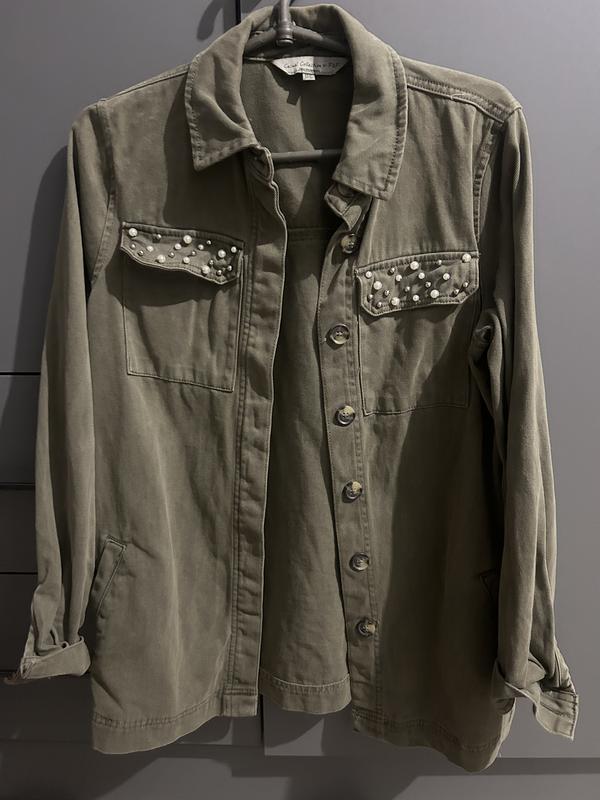 Джинсовый пиджак жакет хаки!Цвет насыщен как новый СтокПо бірці МДлина-77 см Полу обхват груди-48 см тянется От плеча до плеча- 39 см Рукав от горлишка- 73 см