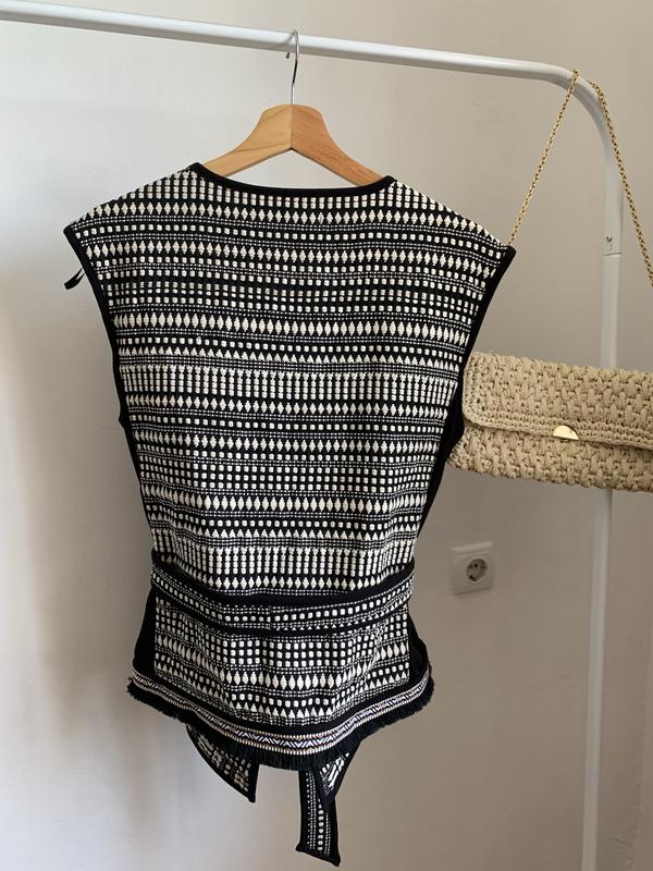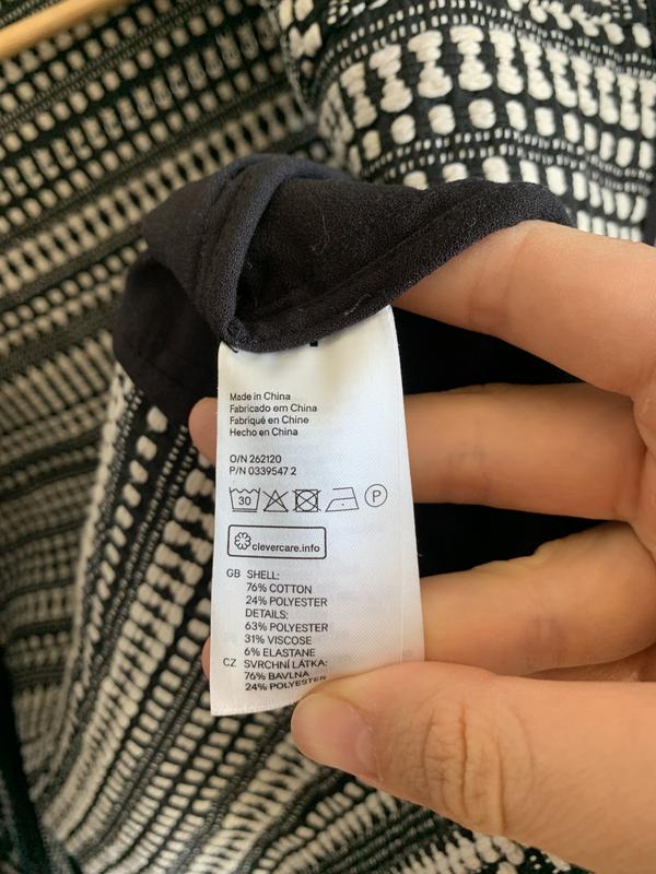 ✔️✔️✔️Размер- 38.Замеры: длина по спине- см, ширина плеч- см, плечо-см, ПОГ- см, ПОТ- см, ПО снизу- см. Заміри не тілі.Склад: she’ll: 76% cotton, 24% polyester, details: 63% polyester, 31% viscose, 6% elastane.