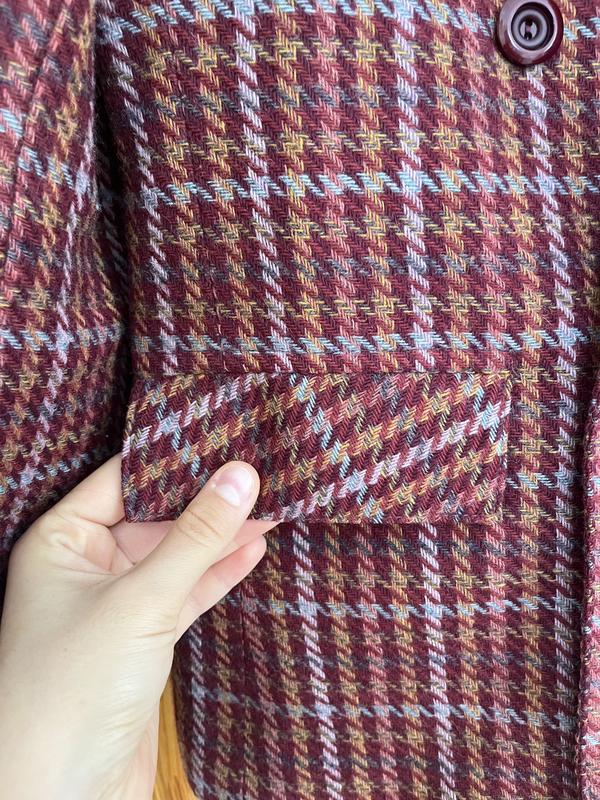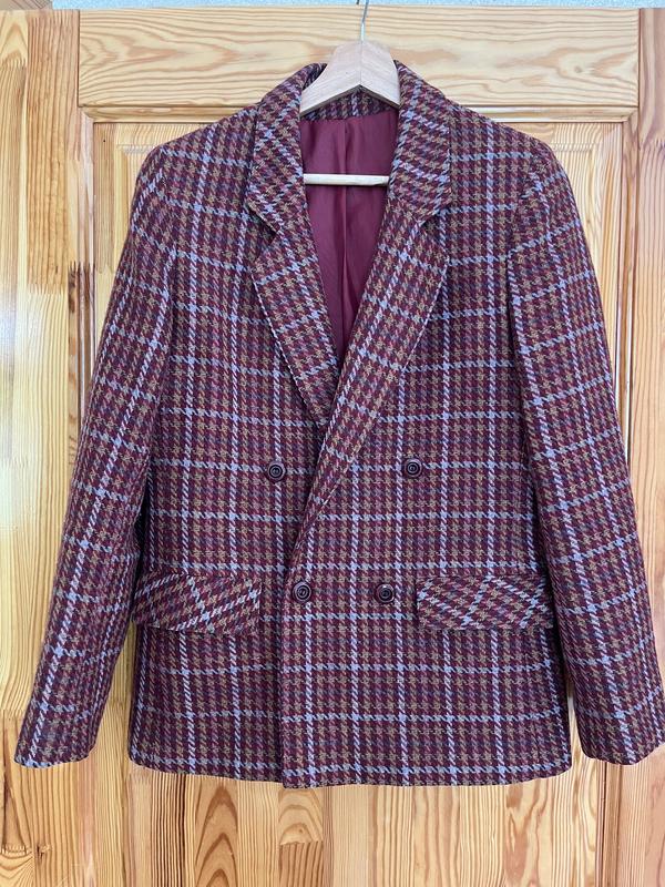 Трендовый шерстяной бордовый пиджак в гусиную лапку