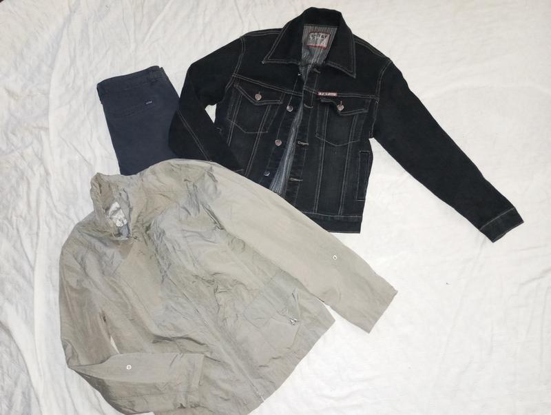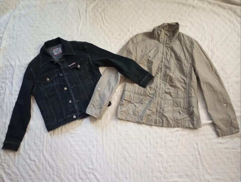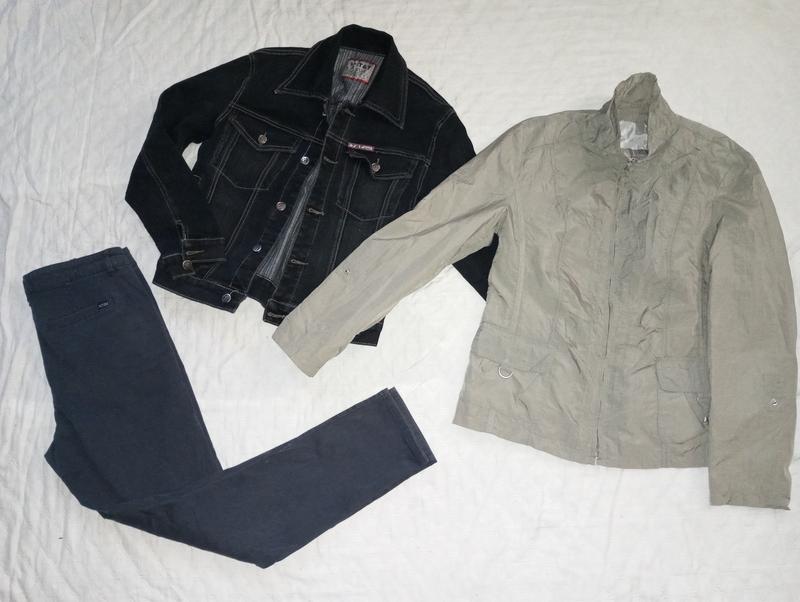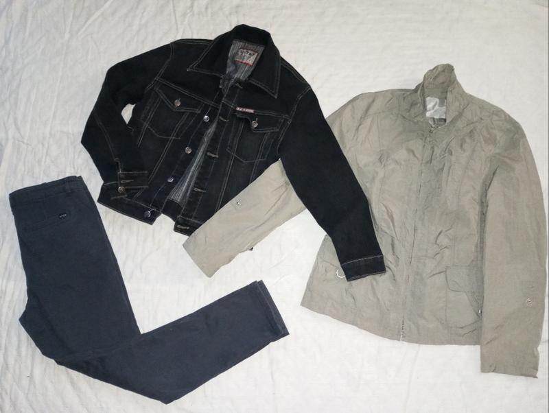 в отличном состоянии две куртки и штаны, джинсовка-с-м-пог-47: рукав-54 плечи-44 дл-55см в идеальном состоянии! ветровка рр-л пог-52 рукав-62 плечи-42 дл-63см в идеале, штаны пот-38-40 поб-47-55 дл-96см сост хорошее. цена за все!только лотом