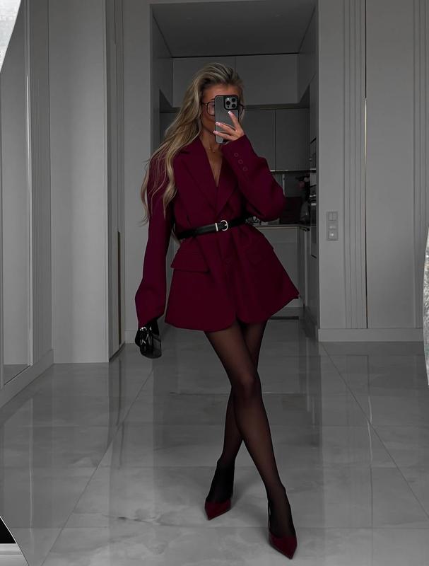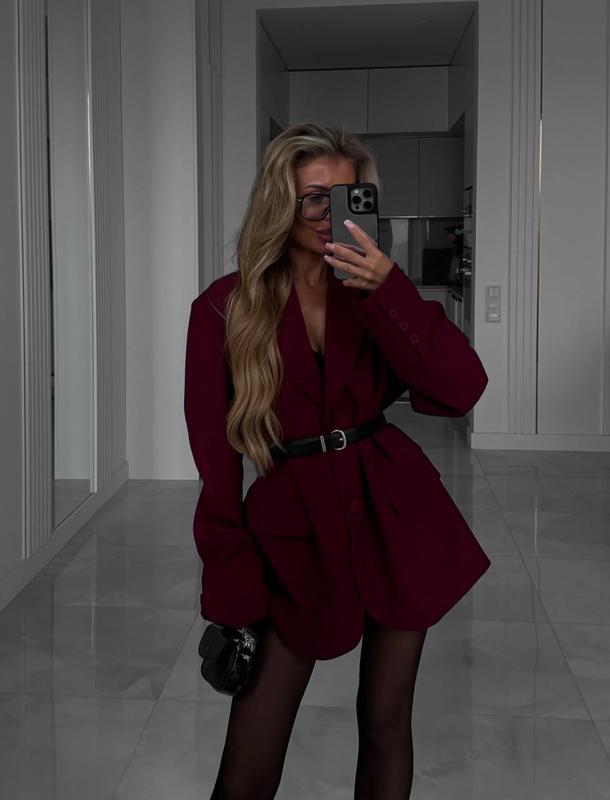 Трендовый женский пиджак свободного кроя на подкладке (бордо, xs-s, m-l)
