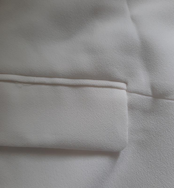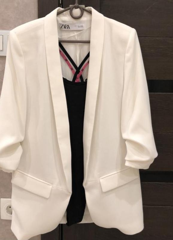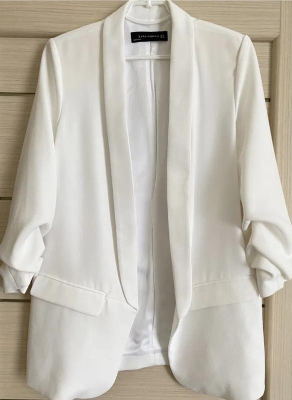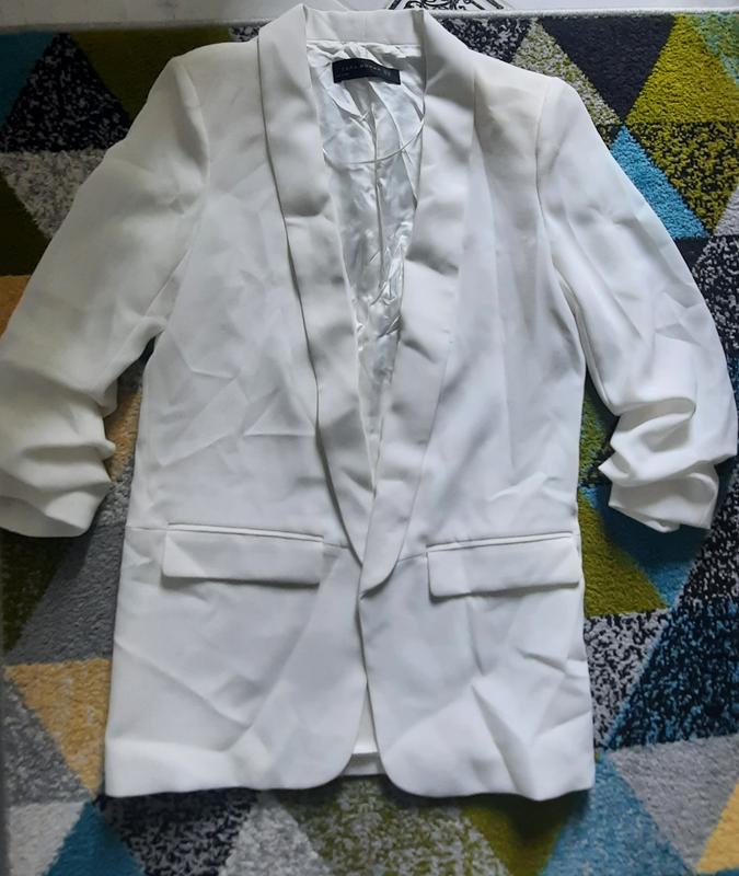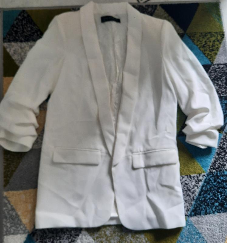 Трендовый пиджак новый белоснежный блейзер удлиненный, имеет подкладку, имитация кармашков, на размер XS, S идеально на различные празднования, в офис, плечи 38, пог 43_45, длин 70