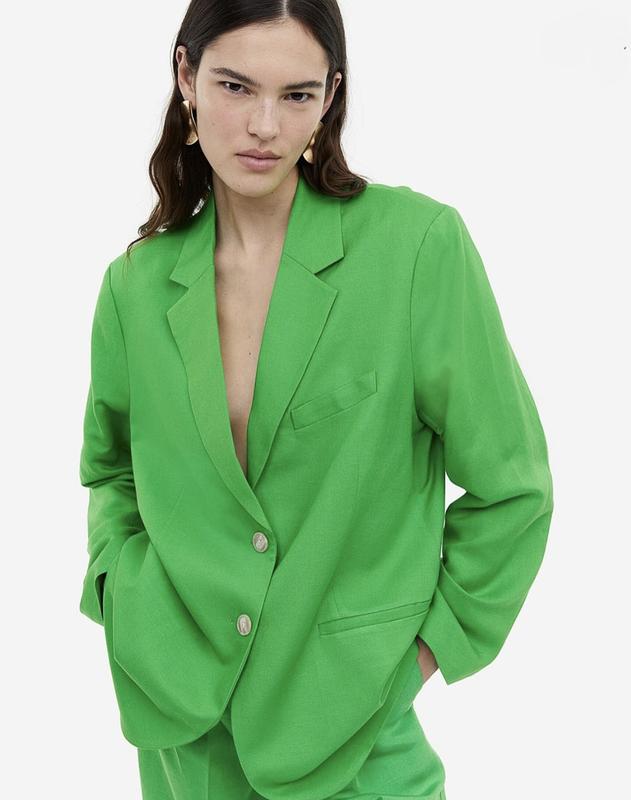 Піджак H&M зеленого кольору з льоном, лацканами та ґудзиками спереду. Наплічники, довгі рукави, штучна прорізна нагрудна кишеня та прорізні передні кишені, на підкладі. Тканина , з якої він виготовлений легко рухається разом із тілом, але водночас досить щільна, щоб зберігати форму. 💫Стан ідеальний без дефектів 💫Розмір М 💫Заміри: довжина спинка 74 см., плечі 43, ПОГ 54 см., пот 54 пос 56 рукава довгі 62 💫 Склад 70% віскоза, 30% льон 💫H&M — шведська компанія, найбільша в Європі роздрібна мережа з торгівлі молодіжним яскравим одягом, що запам'ятовується. Оригінальні і часом провокативні принти, чуйне слідування найсучаснішим трендам, високі комфорт та довговічність – ось що відрізняє продукцію H&M