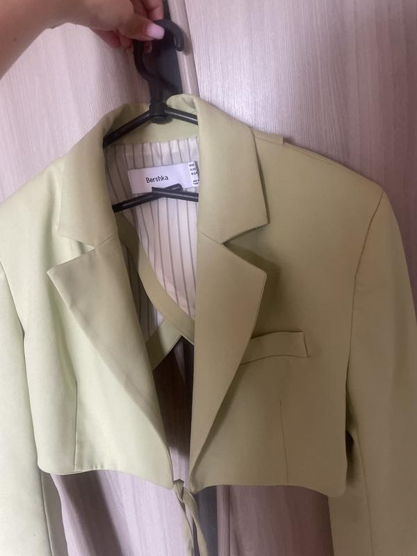 Укорочений піджак на завʼязках з вирізом на спинці та підплічниками