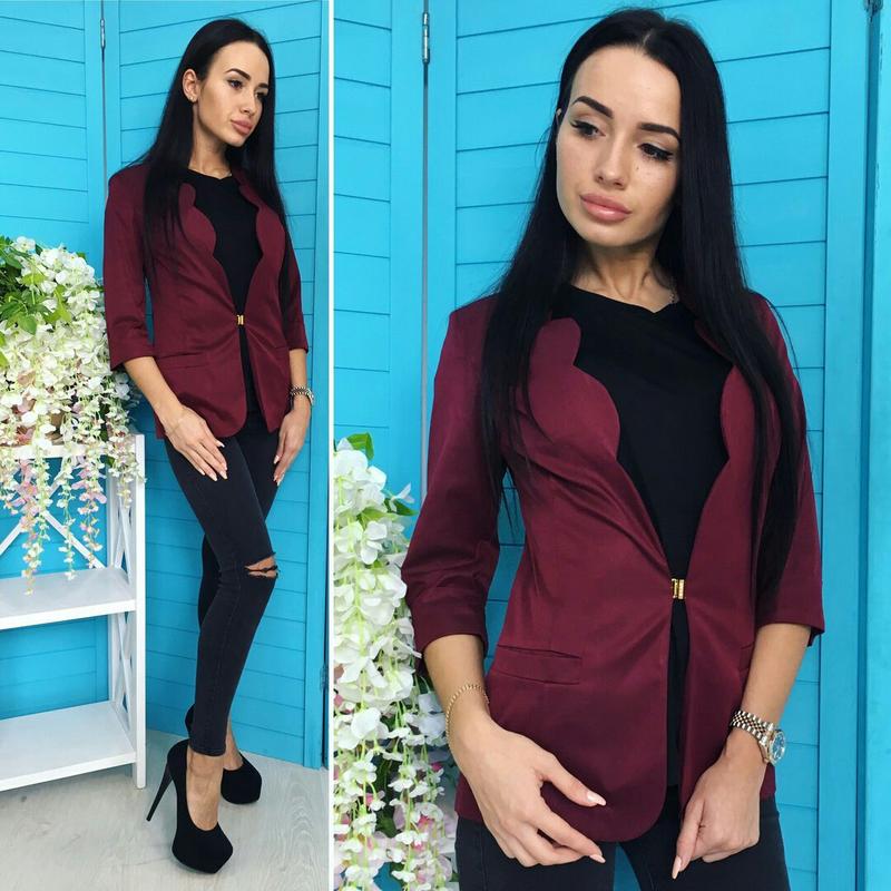 Пиджак Ткань коттон диагональ "Мемори".Цвет бордо.Фигурный вырез борта,рукав 3/4.Размеры 42,46