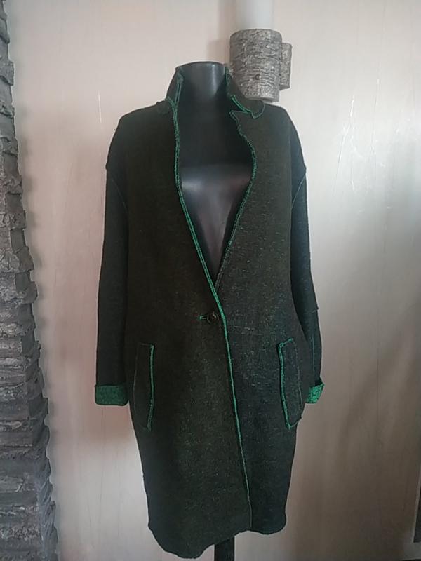 Темно- коричневый цвет.Карманы.Заявлен М,подойдёт на S ПОГ58 ПОБ53 Рукав от ворота69.Можно пришить пуговицу возле ворота.Бирка с составом отсутствует,теплая текстура ткани.
