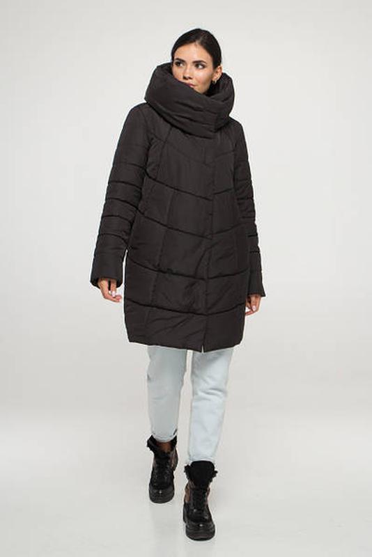 Теплый женский пуховик с высокой горловиной и капюшоном норма/батал