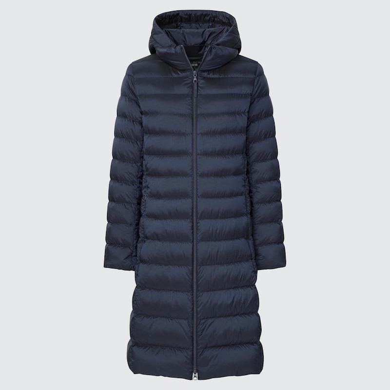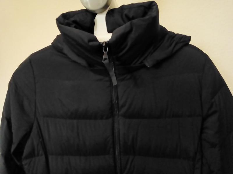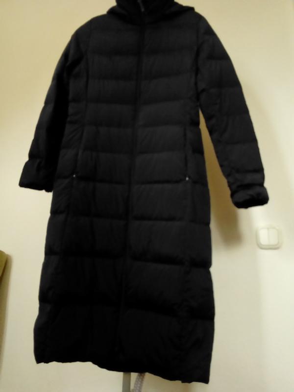 Пальто з капюшоном від Uniqlo темно-синє ультралегке пакується в мішечок, водовідштовхувальний матеріал, капюшон відстібається, кишені на блискавці, напівприталений фасон, розміри: