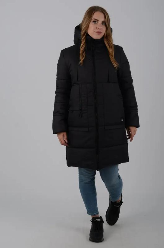 Удлиненная женская зимняя куртка на молнии с капюшоном