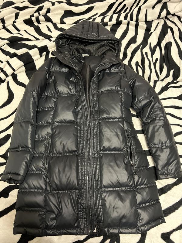 Пуховик черный, размер S Состояние нового, одевался считанные разы Плечи 40 Рукав от плеча 60 Рукав от подмышки 49,5 Длина 85 Ширина под руками 49