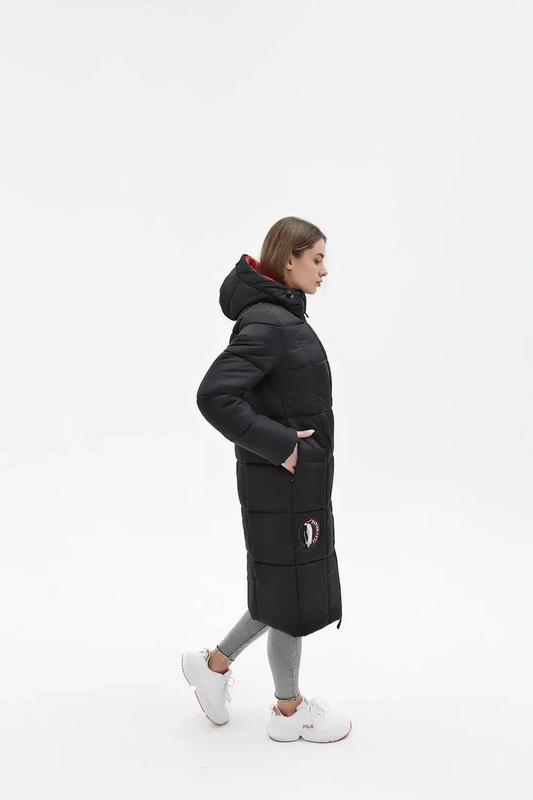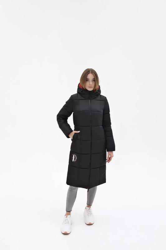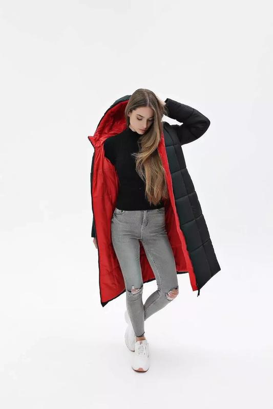 Пуховик женский зимний, выполнен из сочетания двух сторон плащевой ткани:
